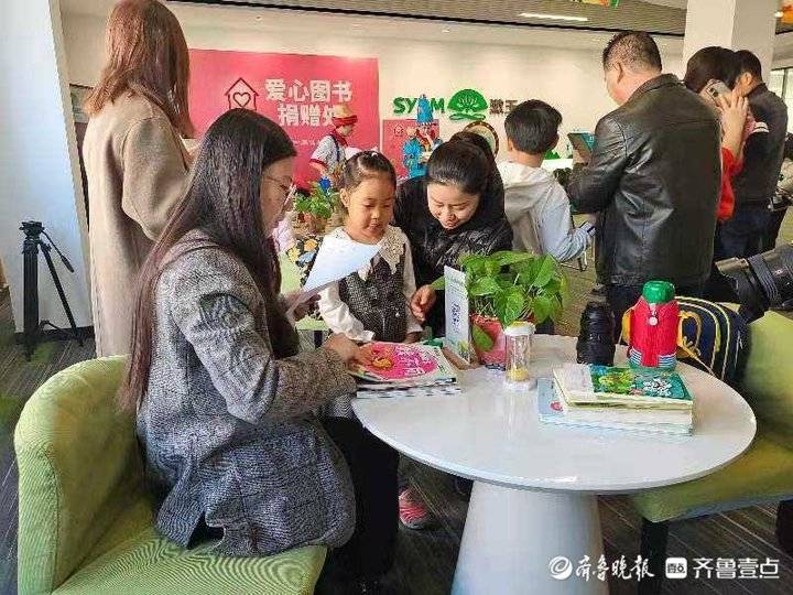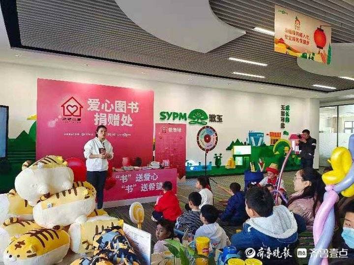 粉色的爱心图书捐赠处,贴满徽章的爱心背景板,形状各异的魔术气球,还有可爱软萌的老虎玩偶。经过工作人员的精心布置,活动现场温馨又有活力。在活动开始,齐鲁晚报·齐鲁壹点记者讲述了乡村孩子们“读书少、读书难”困境,发出“捐出一本书,奉献一份爱”的倡议。听到倡议的孩子们一路小跑,迫不及待地从书包中拿出捐赠的书籍,交到工作人员手中。“参加这次活动很开心,帮助了没有书看的小朋友们。这样他们就能和我们一起学习,茁壮成长。”刚做完书籍登记的李宇珩小朋友说。