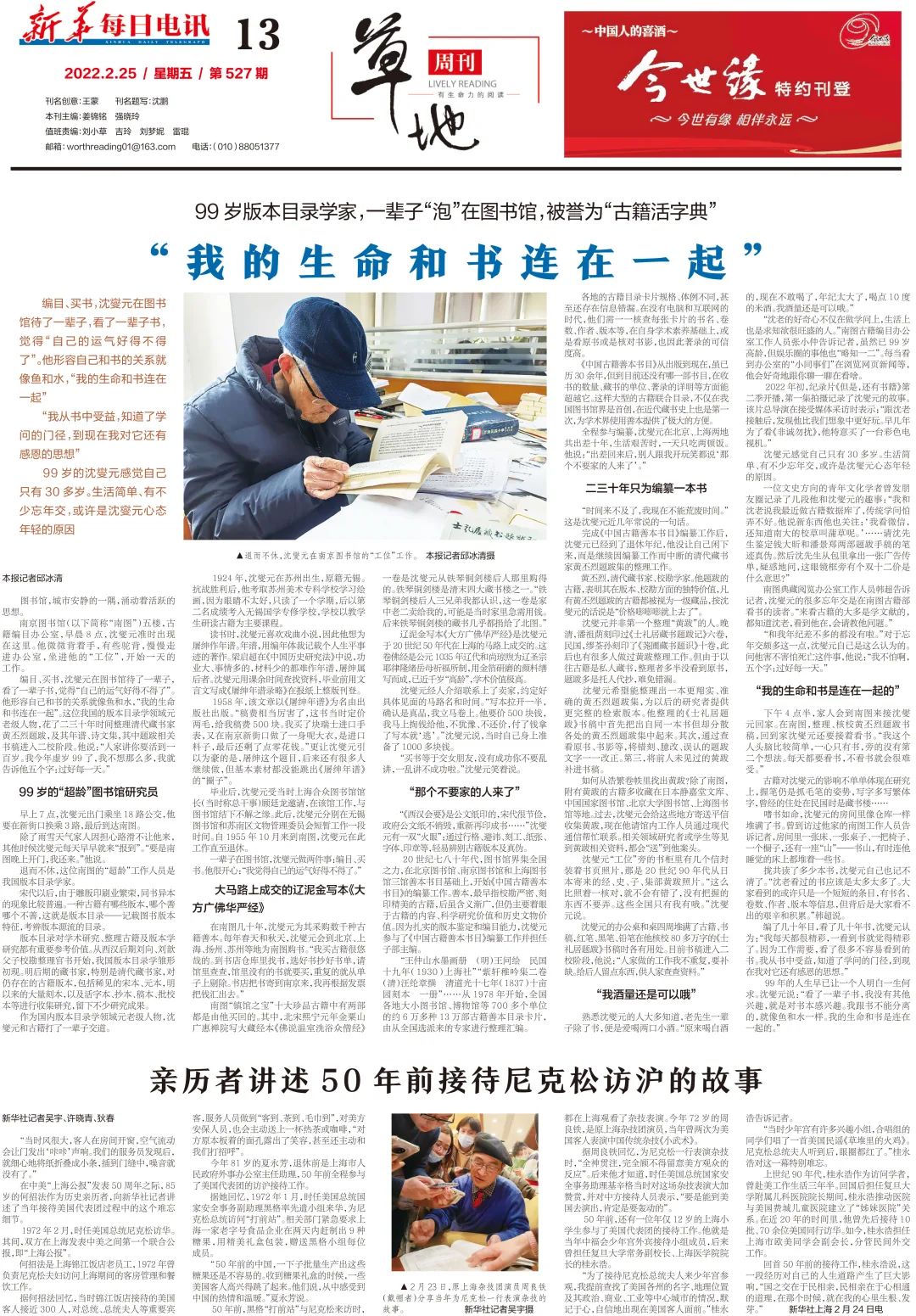 “沈老的好奇心不仅在做学问上,生活上也是求知欲很旺盛的人。”南图古籍编目办公室工作人员张小仲告诉记者,虽然已99岁高龄,但娱乐圈的事他也“略知一二”。每当看到办公室的“小同事们”在浏览网页新闻等,他会好奇地跟你聊一聊在看啥。