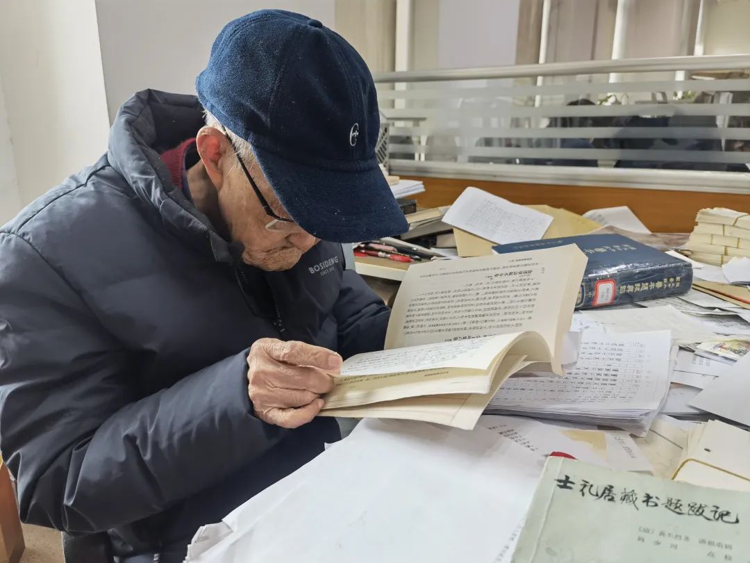沈燮元在展示20世纪90年代从日本寄来的经、史、子、集部黄跋照片 新华社记者邱冰清 摄“那个不要家的人来了”