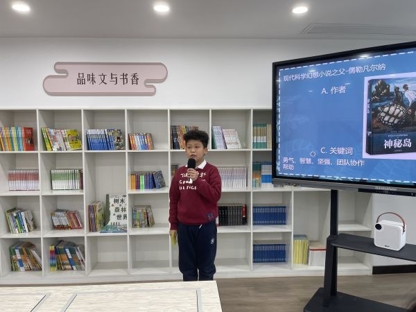 2月19日上午9时,武昌实验小学东湖国际校区校园里静悄悄,图书馆却一派热闹的景象。该校四年级一位学生正在分享自己刚刚阅读过的图书——《查理和巧克力工厂》,她一边讲述着书中五个幸运儿在巧克力工厂神秘莫测的冒险,一边跟听众们互动,互动过程中还派发巧克力,现场的小听众们一边吃着巧克力,一边沉浸在精彩的故事情节中。1个小时里,有4位学生和1位老师进行了不同题材书籍的分享,现场的“小听众”们也收获满满。学生们讨论着故事情节,谈论着主人翁的经历带给他们的启发。