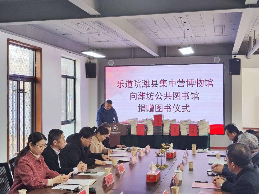 捐赠仪式在乐道院潍县集中营博物馆西区办公楼一楼会议室举办。捐赠的图书为:《潍县集中营》《被遗忘的潍县集中营》(中英文版)《山东集中营》《中国逃亡记》四种有关乐道院潍县集中营的图书,共计480册,价值约10万余元。潍坊市文化和旅游局党组成员、潍县集中营博物馆馆长宿立军在捐赠仪式上表示,纪念历史、反思历史首先要了解历史、铭记历史。所以,乐道院潍县集中营博物馆特将这四种具有潍县鲜明地方特色和档案年鉴性质的书籍无偿捐赠给潍坊市图书馆和县市区图书馆及有关单位。