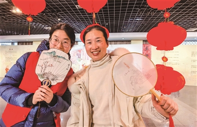 四川籍留杭过年的苏顺渝说:“我今天收获太大了,每个项目都体验了,完成10多个非遗作品,切身感受了国风&宋韵’的魅力,感受到了杭州党群活动、读书活动的品位和品质。闲林街道党群服务中心的老师给我书写的嵌入我名字的书法年历挂轴,发到朋友圈后一大波好友点赞!”